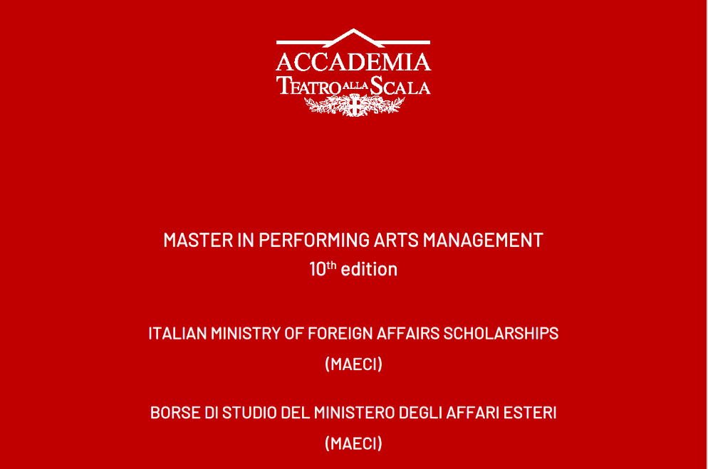 L’Ambasciata d’Italia è lieta di informare che il Ministero degli Affari Esteri e della Cooperazione Internazionale (MAECI) ha annunciato la concessione di borse di studio in favore di studenti internazionali regolarmente iscritti al Global Master in Performing Arts Management (GMPAM), organizzato dall’Accademia Teatro alla Scala.